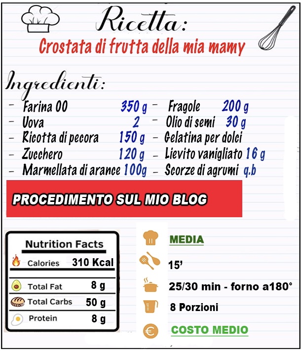 Quando la mia mamma prepara torte e dolci devo necessariamente mettere da parte il mio lato "fit". Sì non posso proprio resistere ad una fetta di crostata o di una cremosissima torta. Questa crostata è facilissima da preparare, gustosa e fresca il che la rende davvero perfetta per questo periodo. La particolarità rispetto alle comuni crostate con la marmellata è l'aggiunta della ricotta. Allacciamo i grembiuli e via !